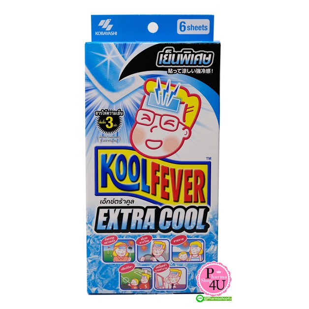 Koolfever Extra Cool สูตรเย็นพิเศษ 3 เท่าแผ่นเจลลดไข้สำหรับเด็กผู้ใหญ่ 6 แผ่น/กล่อง Kool fever #7406