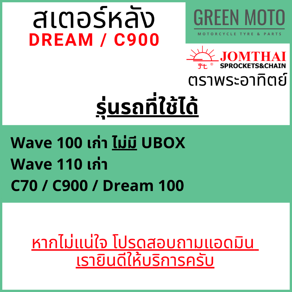 สเตอร์หลัง Jomthai จอมไทย พระอาทิตย์ เบอร์ 420 สำหรับ C900, DREAM 100 และ Wave 100,110 ตัวเก่า 26 - 40 ฟัน ของแท้ 100%