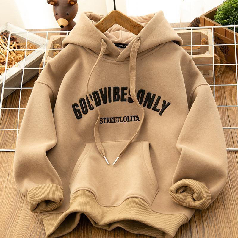 Smart✨พร้อมส่ง✨เสื้อกันหนาวเด็ก(3-14ขวบ) สกรีนลาย Goodvibesonly ผ้าสำลี กันหนาวได้ค่า 1003