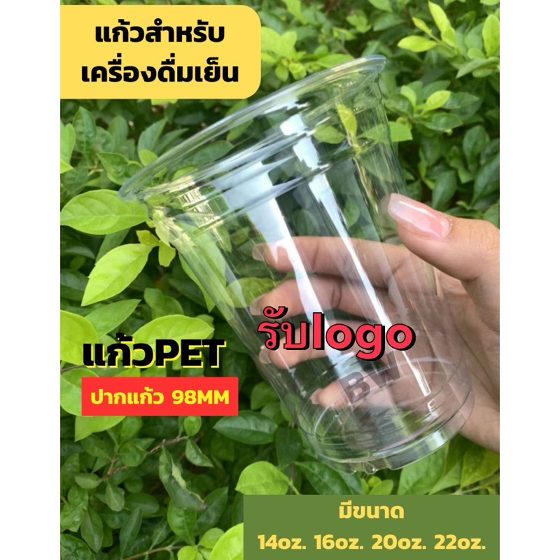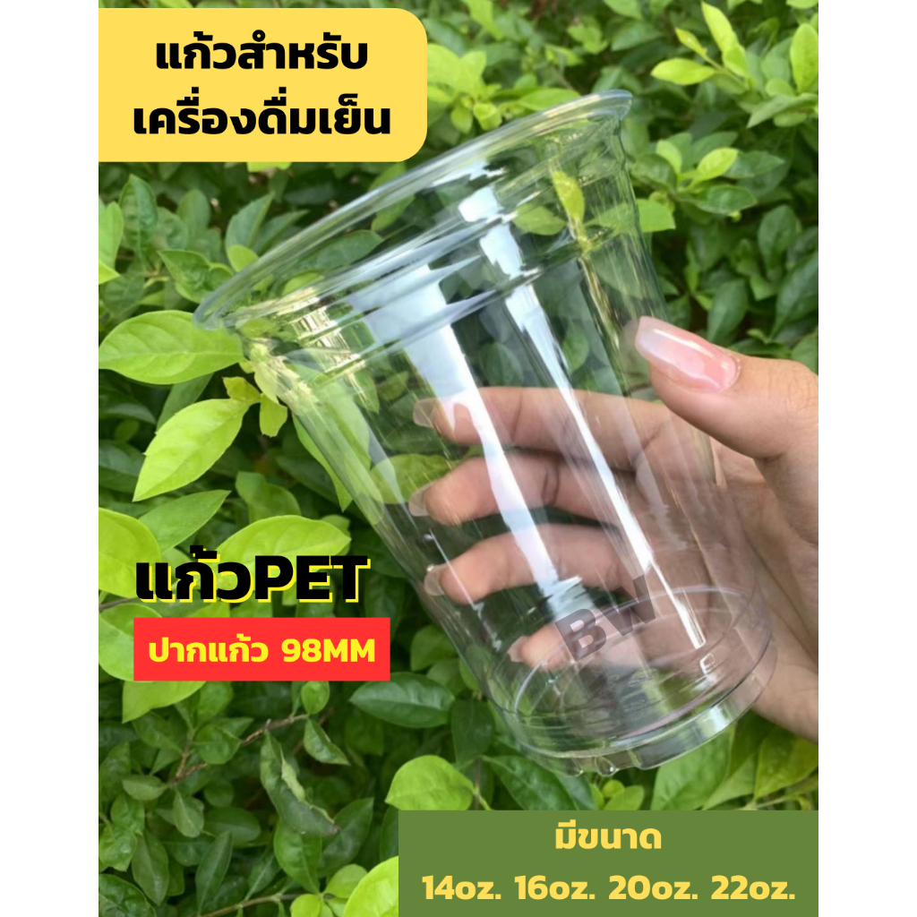 PET【1000ใบ】 ยี่ห้อ【 PC CUP 】ไม่รวมฝา16/20/22ออนซ์ ไม่พิมพ์ลาย ปาก 98 (50ใบ/แถว) รับทำโลโก้โรงงานไทย