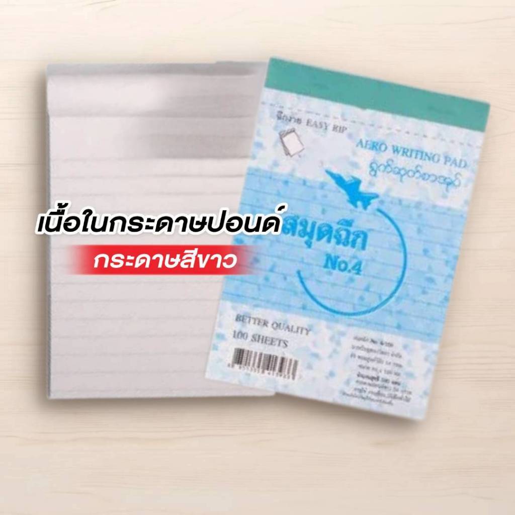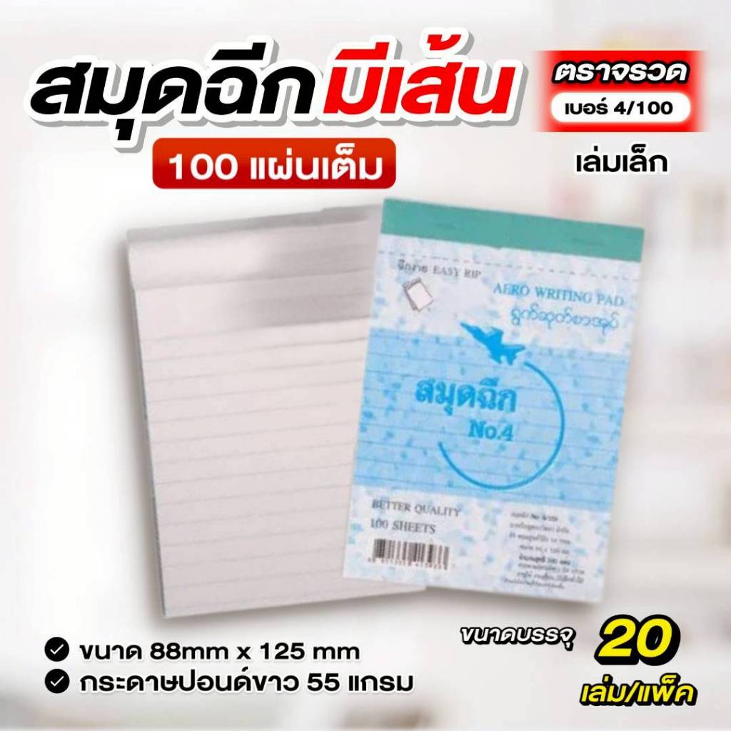 ตราจรวด สมุดฉีกเบอร์ 4/100 “มีเส้น” เย็บลวด 100 แผ่น (สมุดเล่มเล็ก)