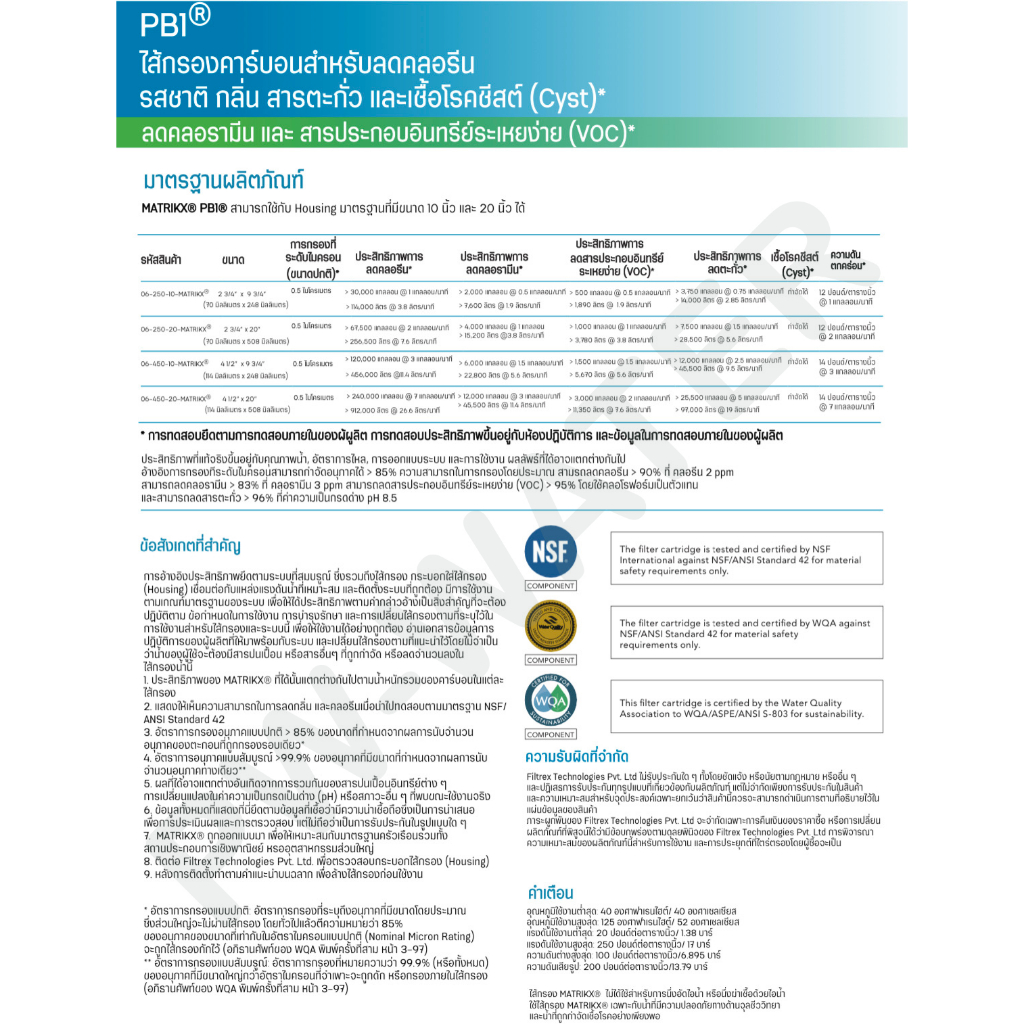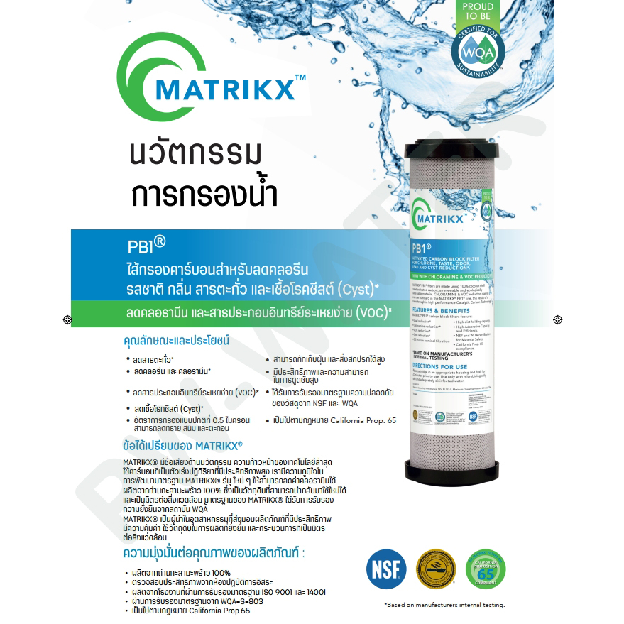 ไส้กรองน้ำ Matrikx รุ่น PB1 Carbon Block 0.5 ไมครอน 10 นิ้ว x 2.5 นิ้ว