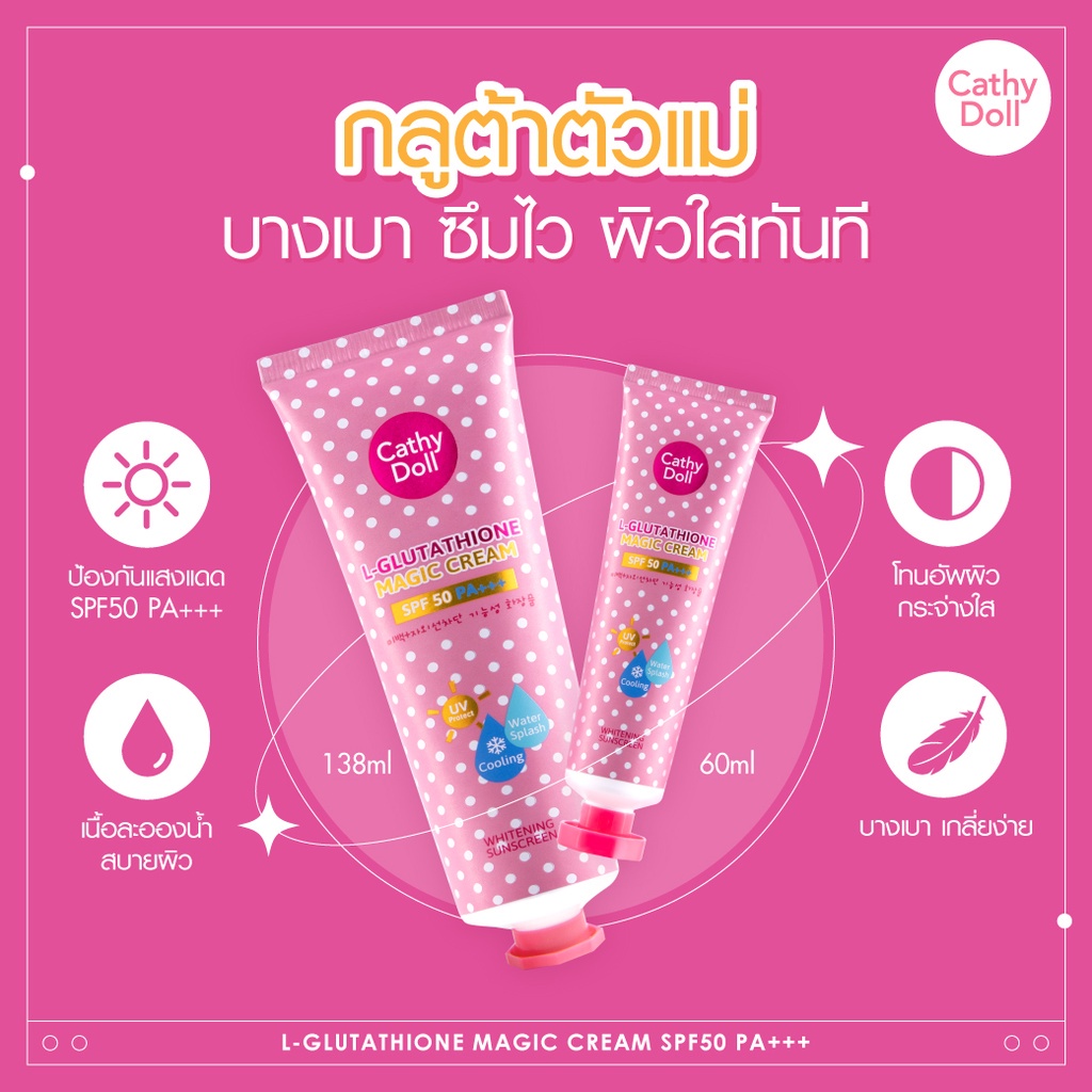 Cathy Doll แอลกลูต้าไธโอนเมจิกครีม เอสพีเอฟ50 พีเอ+++ 138ml (ครีมทาผิว,โลชั่น,โลชั่นกันแดด)