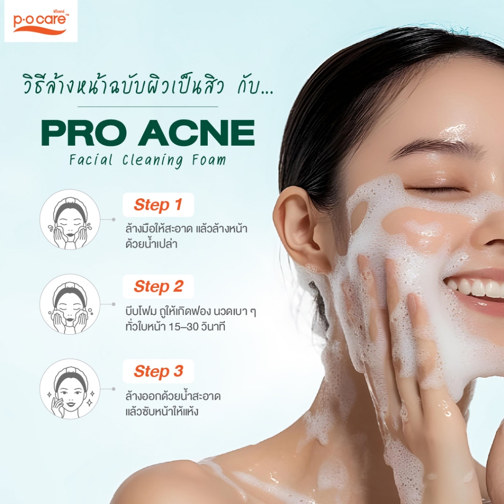 POCare โฟมล้างหน้า สูตรลดสิว Pro Acne Facial Cleansing Foam 50 ml