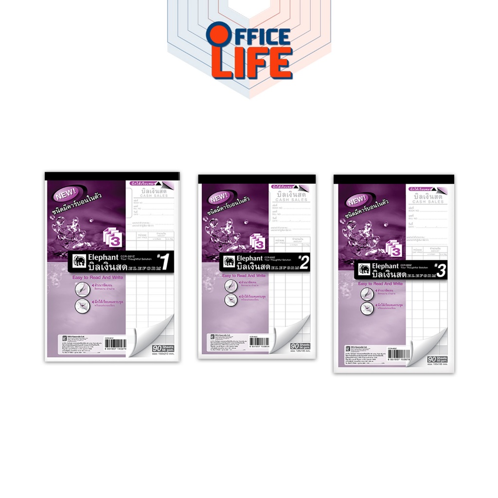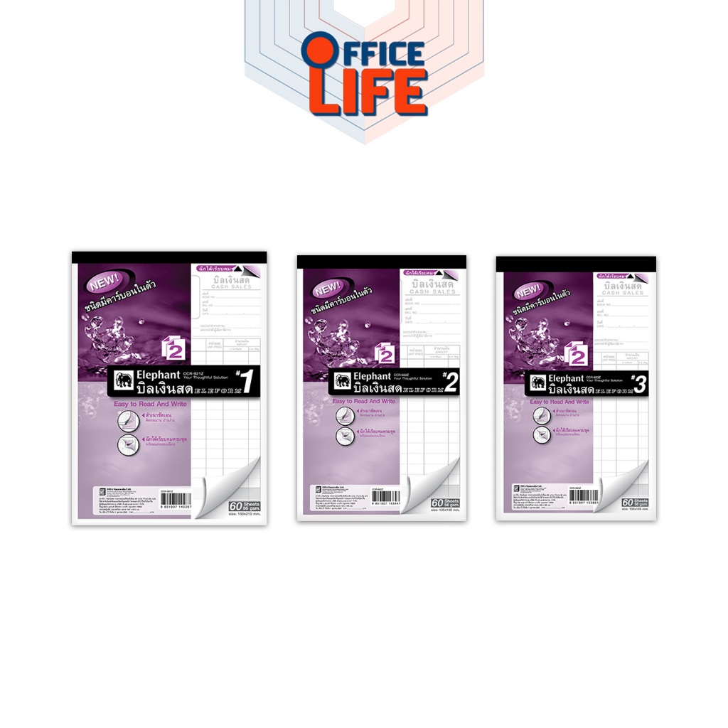 Elephant ( ตราช้าง ) สมุดบิล บิลเงินสด มีให้เลือก 2 แบบ ฟรีกระดาษคาร์บอน ( 1 เล่ม )