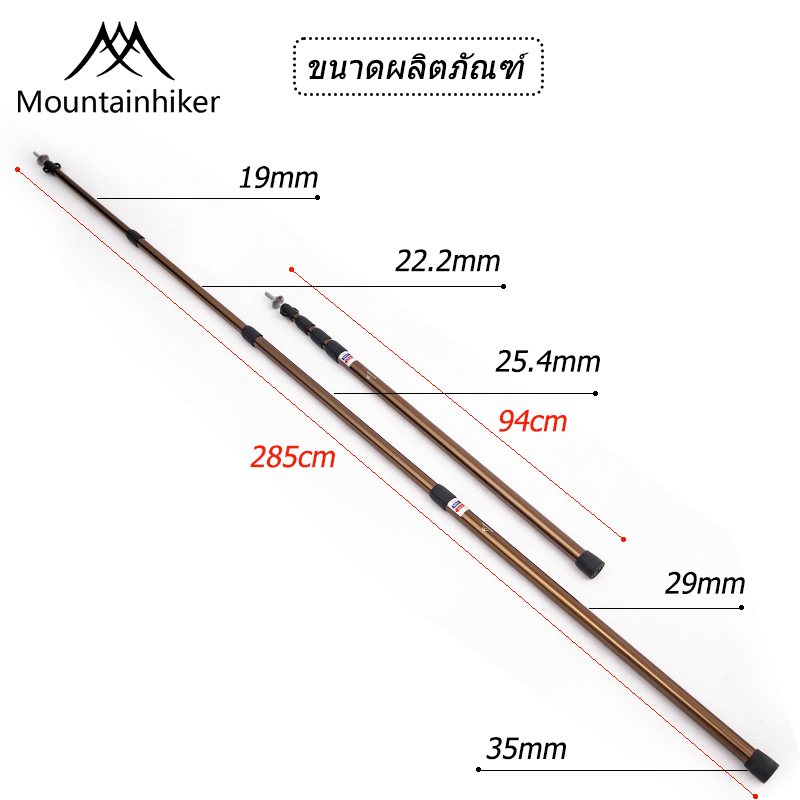 พร้อมส่ง เสาฟลายชีท เสาเต็นท์อลูมิเนียม เสาฟรายชีทเต้นท์ เสาฟลายชีท เสาทาร์ป Mountainhiker พร้อมถุงจัดเก็บเสาอลูมิเนียม 2.8 เมตร