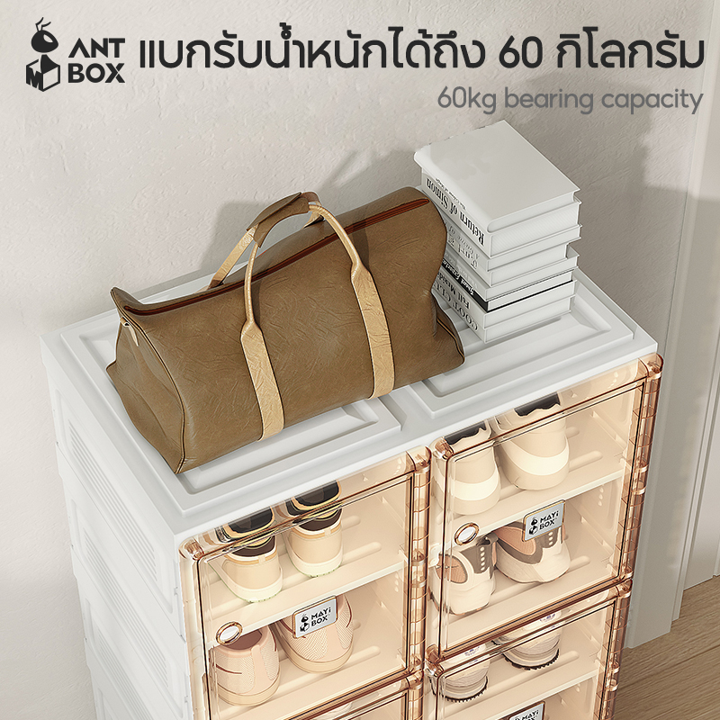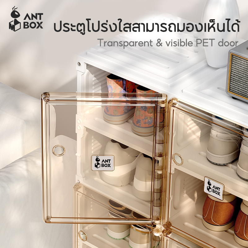 ANTBOX [พร้อมส่ง !! ] กล่องใส่รองเท้า 2 แถว 10 ชั้น 20 คู่ ติดตั้งง่าย พับเก็บได้ มีหลายช่องเก็บ ประตูแม่เหล็ก แข็งแรงทนทาน กันน้ำกันแดด