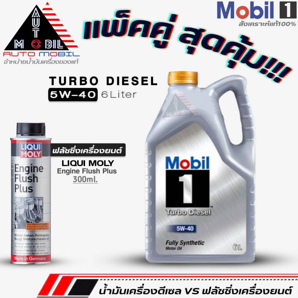 น้ำมันเครื่องดีเซล Mobil1 Turbo Diesel 5W-40 สังเคราะห์แท้ ขนาด(6L./6+1L.)+ฟลัชชิ่งLiquiMoly Engine Flush Plus 300ml.