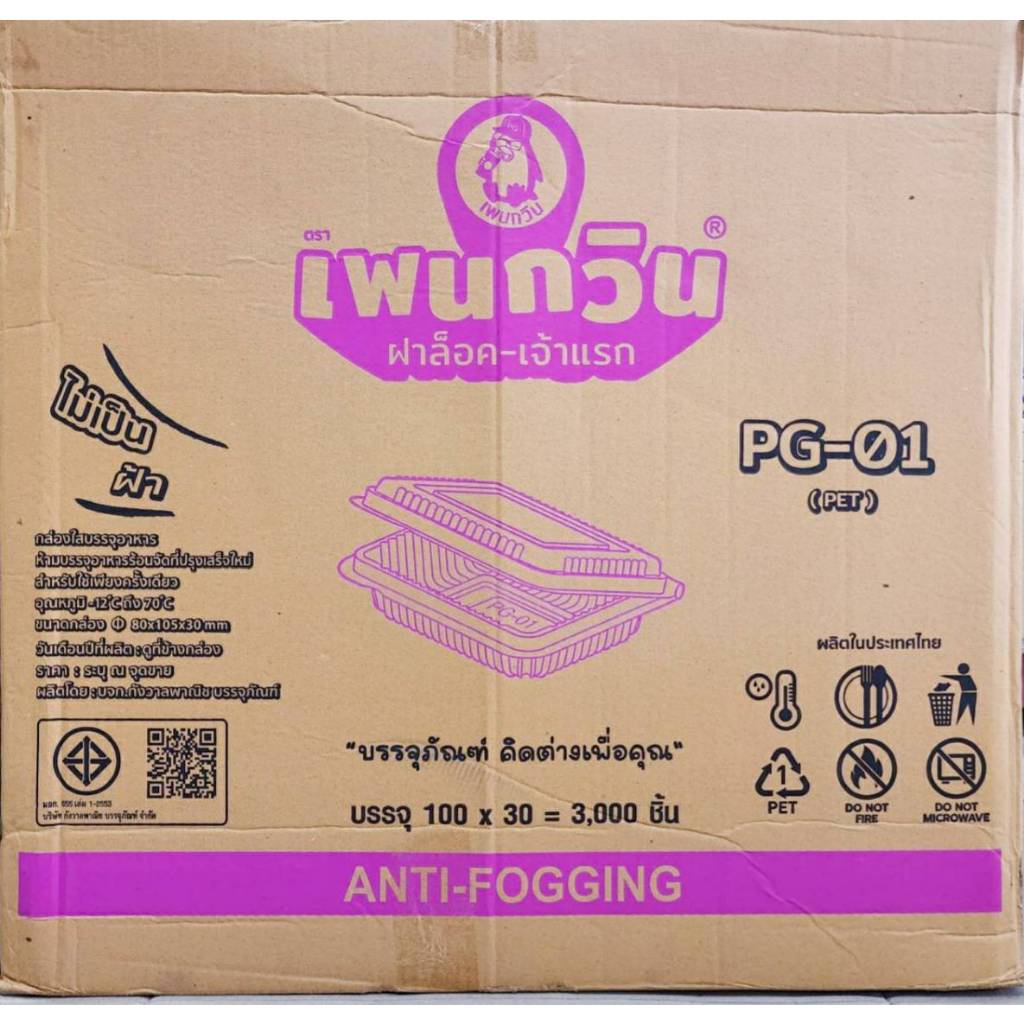 กล่องใส PG - 01 (PET) ยี่ห้อเพนกวิน ฝาล็อค ไม่เป็นไอน้ำ ยกลัง 3,000 ชิ้น
