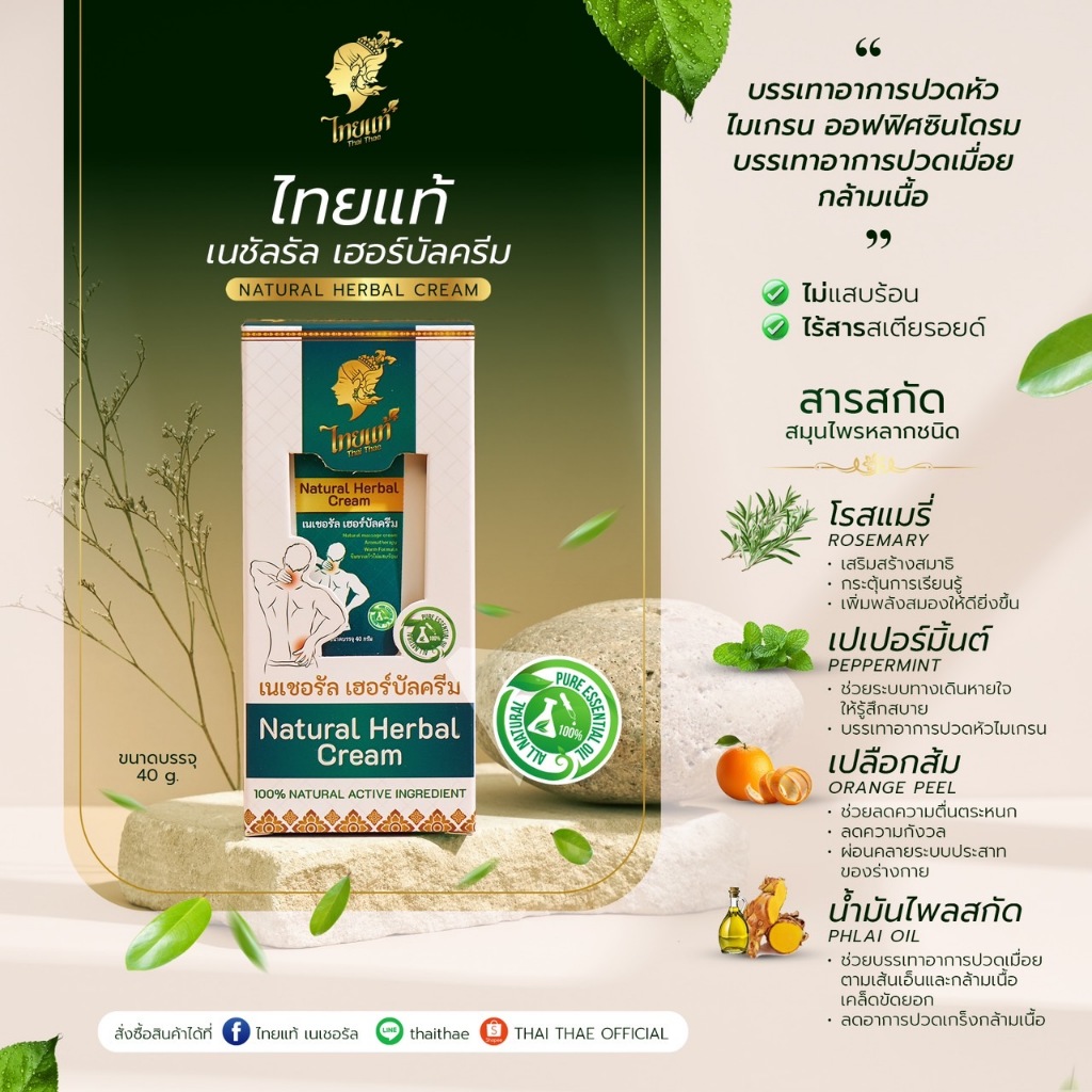 ครีมแก้ปวด คอ บ่า ไหล่ ออฟฟิศซินโดรม ปวดเข่า ปวดหลัง ปวดกล้ามเนื้อ ไทยแท้ เนเชอรัล เฮอร์บัล ครีม