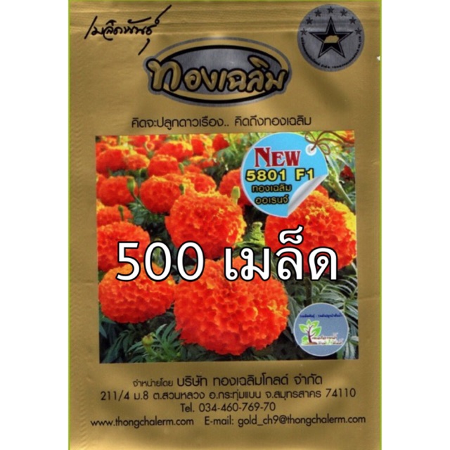 500เมล็ด สีส้ม ไบรท์ออเร้นจ์ ทองเฉลิม โกลด์ ดาวเรืองตัดดอก 5801 F1 สีส้ม 🧡