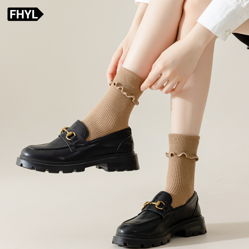 FHYL ฤดูร้อนเกาหลี ผ้าฝ้ายแท้ ผู้หญิง ถุงเท้า JK สีพื้น แฟชั่น ถุงเท้าอเนกประสงค์ นุ่ม ระบายอากาศ สีขาว สําหรับผู้หญิง