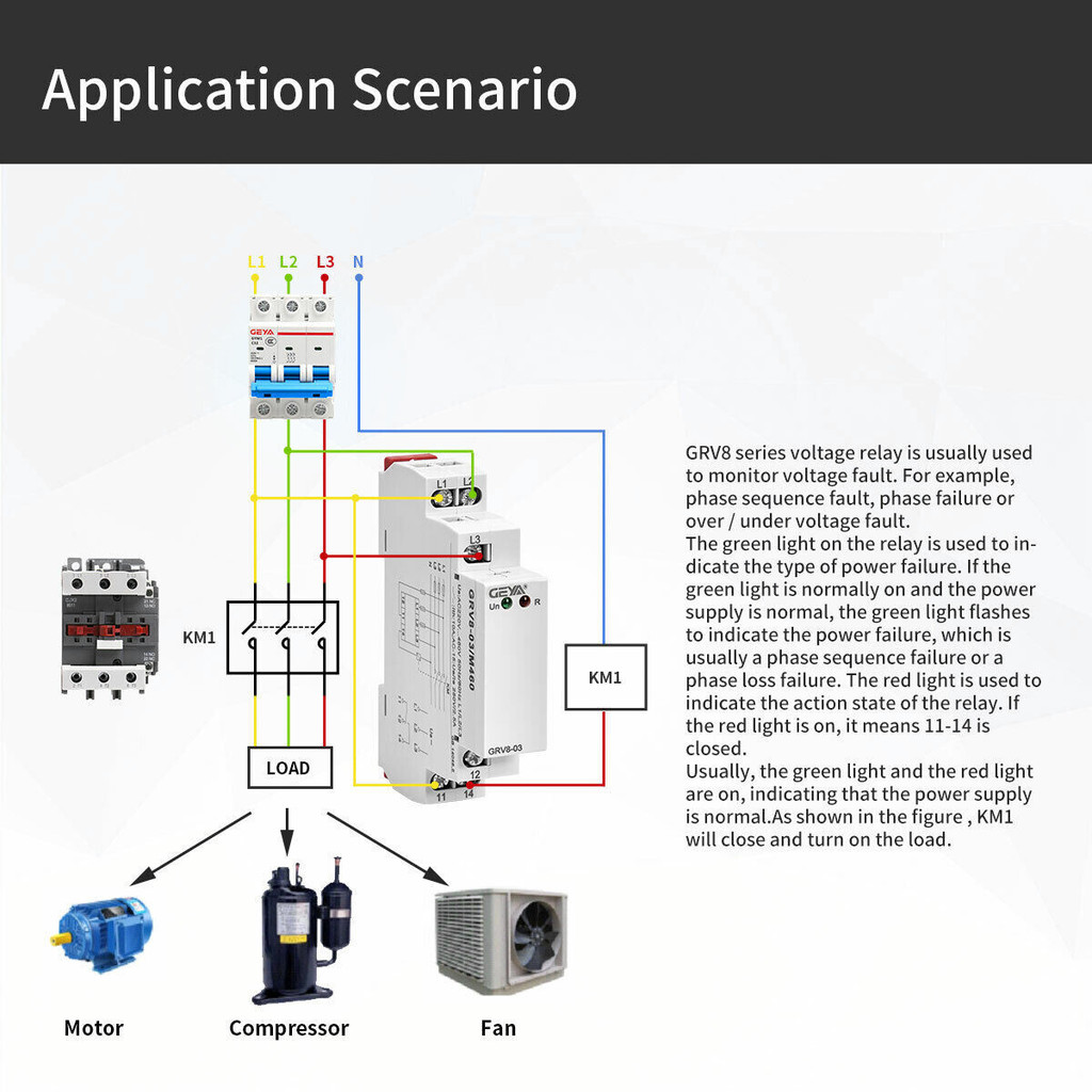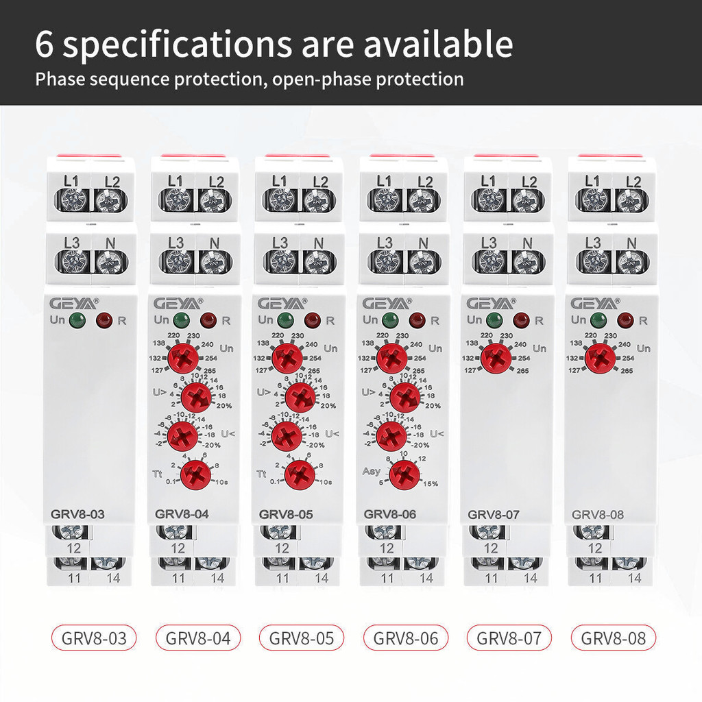 GEYA GRV8-03/04/05/06/08 3 เฟสป้องกันแรงดันไฟฟ้ารีเลย์ลําดับเฟสเฟสล้มเหลวรีเลย์ 8A 10A