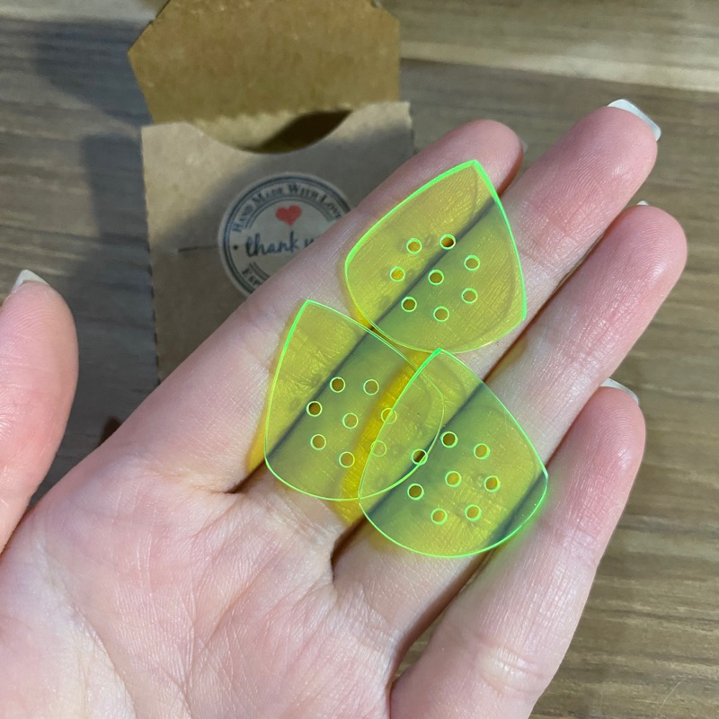 ปิ๊กกีตาร์โปร่ง Neon Thin Acoustic Tone สีเขียวสะท้อนแสง หนา 1 มิล (3 ชิ้น)