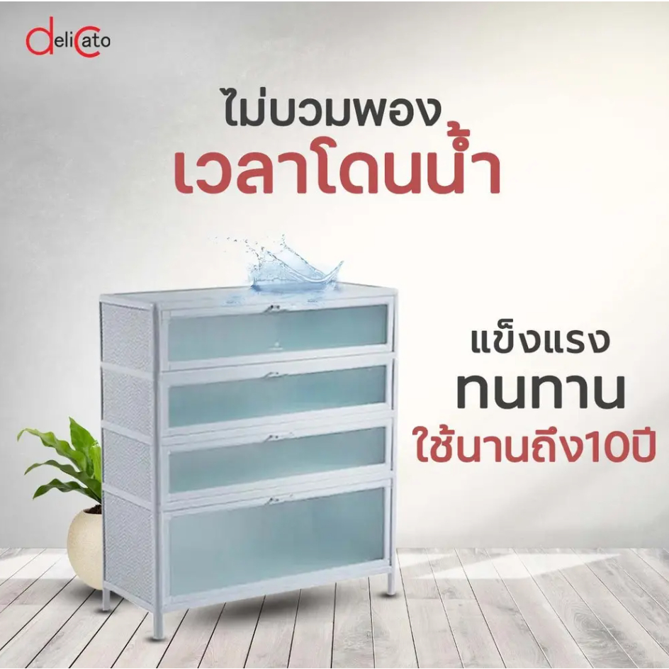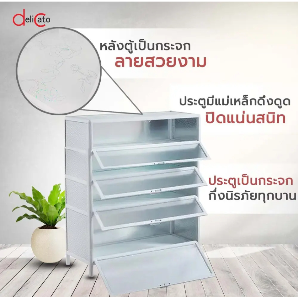 GlobalHouse DELICATO ตู้วางรองเท้า รุ่น Henri 4 ชั้น ขนาด 82.5*33*92.5 สีขาว สินค้าของแท้คุณภาพดี