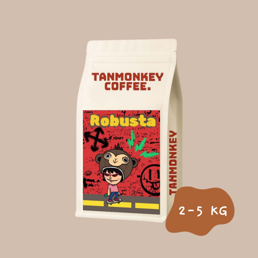 Tanmonkey Coffee เมล็ดกาแฟคั่ว ราคาส่ง 2kg / 5 kg Robusta 100% high-caffeine ( คั่วเข้ม )