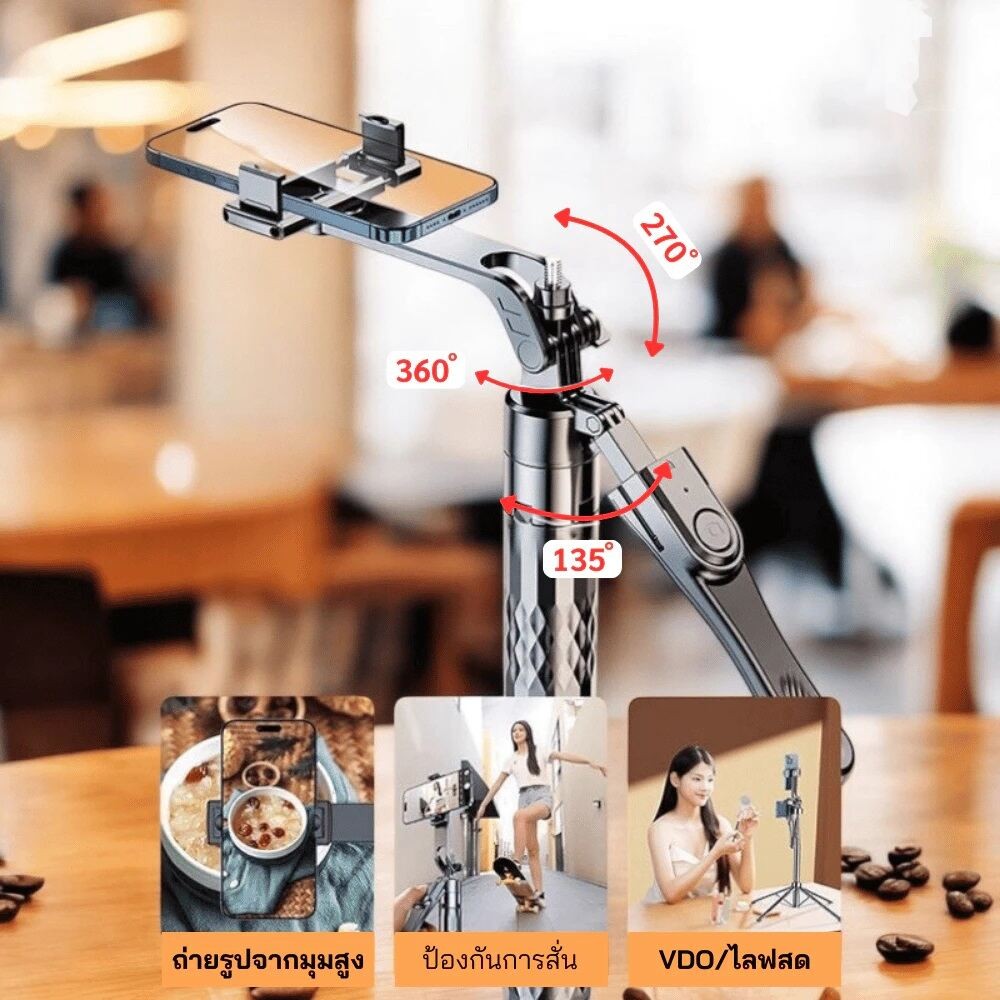 ไม้เซลฟี่บลูทูธ รุ่น K28P หมุนได้ 360 องศา พร้อมรีโมทบลูทูธ ยืดได้1.75ซม.ขาตั้งTripod พร้อมส่ง