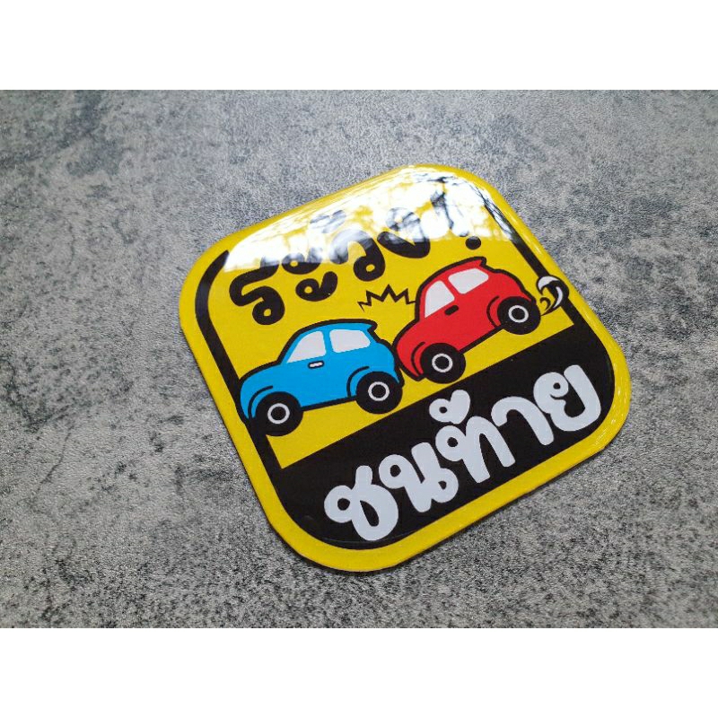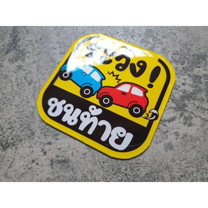 แผ่นแม่เหล็กติดรถยนต์ ลาย ระวัง! ชนท้าย Cartoon Edition