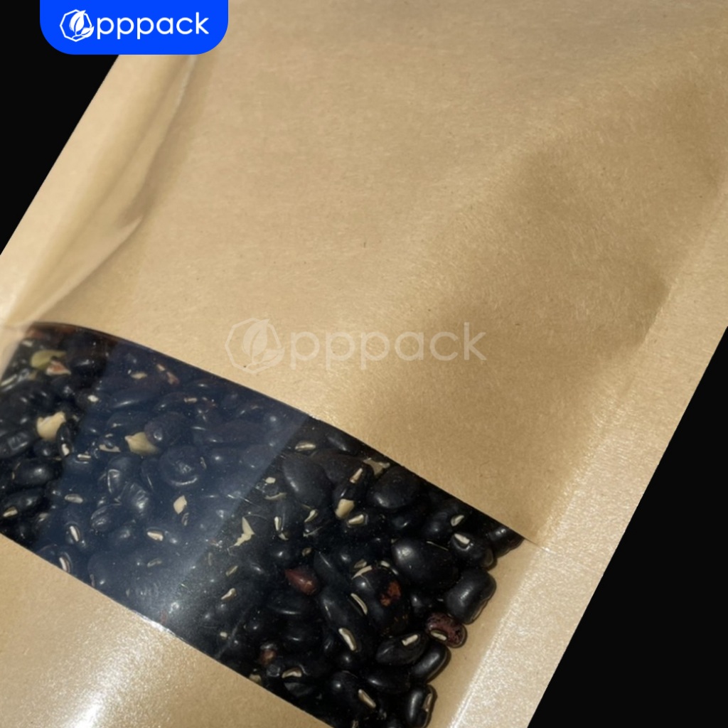 (แพค50ใบ) ถุงคราฟท์น้ำตาล หน้าต่างใส 100% ด้านหลังทึบ ตั้งได้