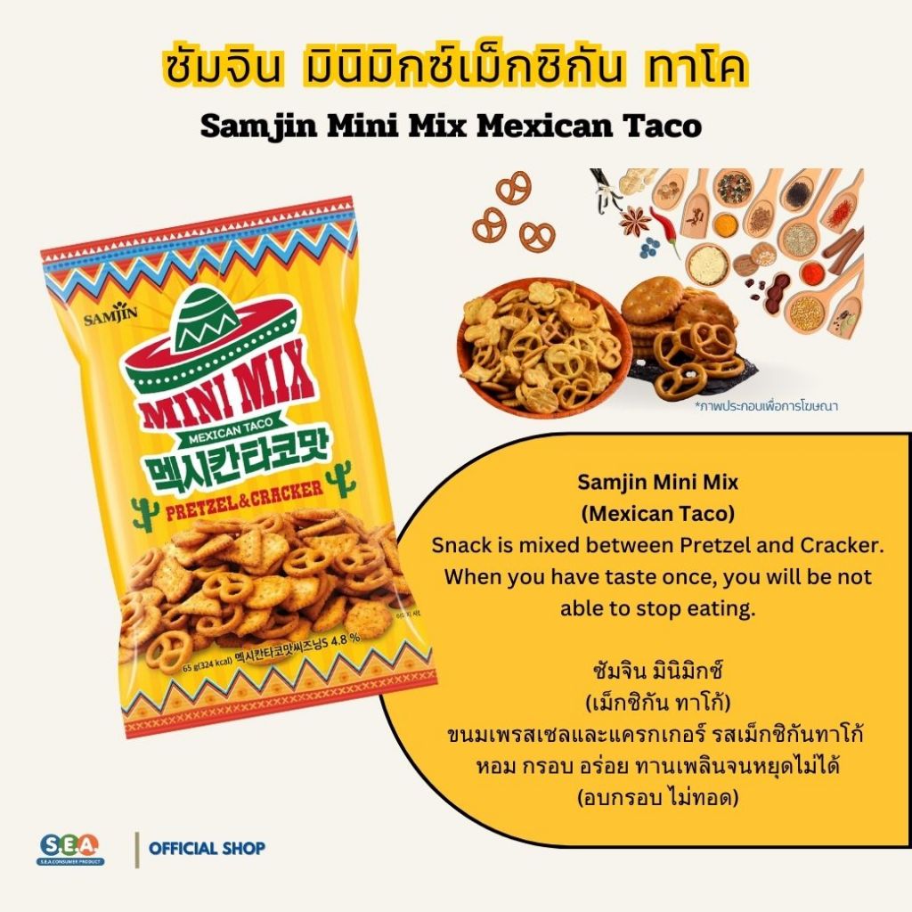 Samjin มินิมิกซ์ เพรสเซลอบกรอบ เม็กซิกันทาโค Pretzel Mini Mix Mexican Taco 65g. | Exp: 19 Nov 2026
