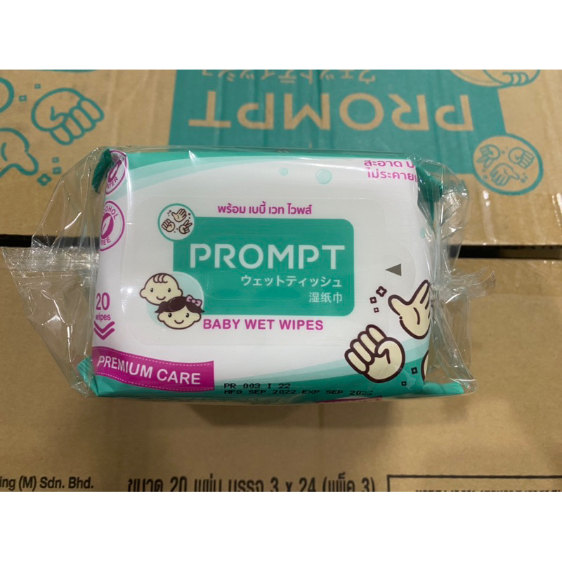 Prompt ทิชชู่เปียก เบบี้ ไวพส์ 20 แผ่น (ราคานี้ต่อ3ชิ้น))