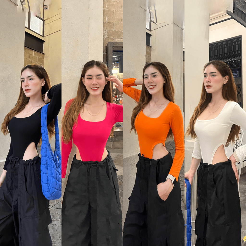 🌈 SpinnyHouse 🌈 บอดี้สูทแขนยาว บอดี้สูทเว้าเอว ☀️ เป้าแกะได้ กระดุมแป๊ก บอดี้สูท ผ้าเรย่อนยืดเยอะม้าก 309