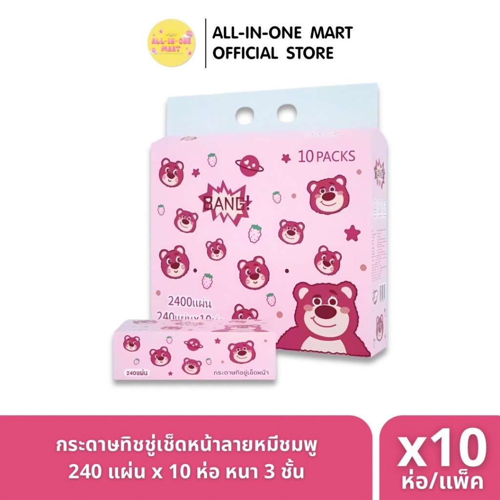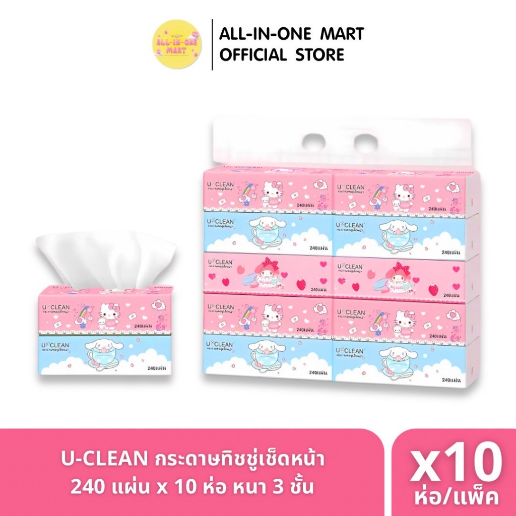 U-CLEAN กระดาษทิชชู่เช็ดหน้า *คละลายการ์ตูนคิตตี้ ทอยสตอรี่ คุโรมิ หนา 3 ชั้น 240 แผ่น x10 ห่อ/แพ็ค / ทิชชู่หมีอวกาศ