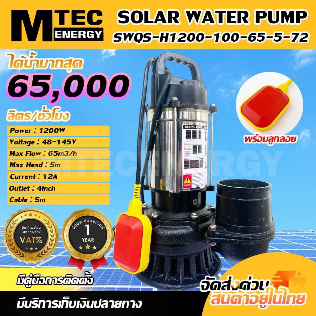(NEW) ปั๊มน้ำจุ่มโซล่าเซลล์ พร้อมลูกลอย รุ่น : SWQS-H1200-100-65-5-72 ท่อ 4 นิ้ว 1200W 48-145V