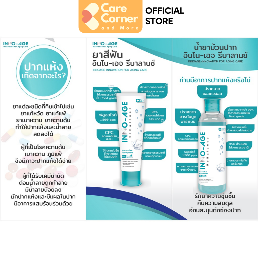 INNO-AGE Mouthwash น้ำยาบ้วนปากผู้สูงอายุ ผู้ที่ ปากแห้ง น้ำลายน้อย เบาหวาน มะเร็ง ฉายแสง ฉายรังสี คีโม INNOAGE อินโนเอจ