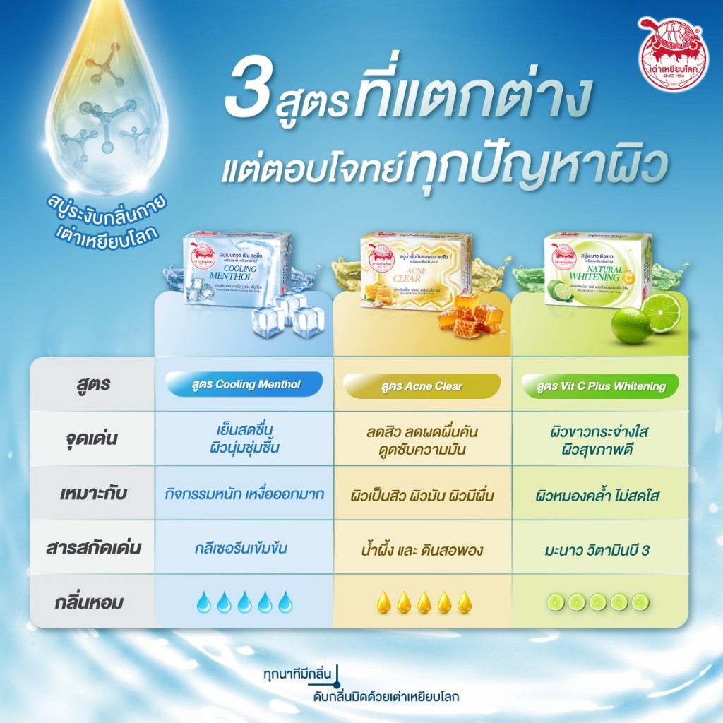 [1 ก้อน] เต่าเหยียบโลก สบู่ระงับกลิ่นกาย มี 3 สูตร [80 กรัม/ก้อน]