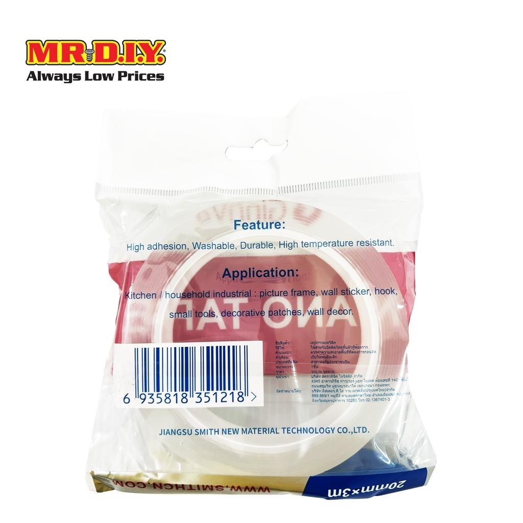 GINNVA เทปกาวอะคริลิค แบบใส อเนกประสงค์ ขนาด หน้ากว้าง 20 มม. x ยาว 3 ม.