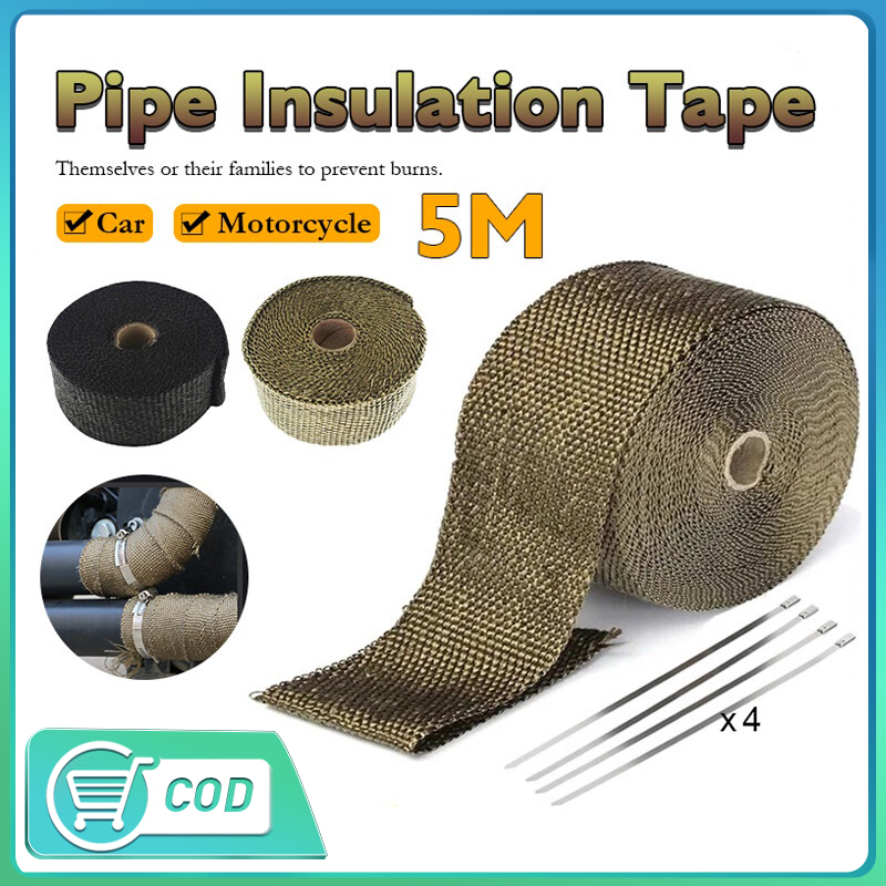 COD ผ้าพันท่อไอเสีย ยาว 5 เมตร กว้าง 5 ซม. ฉนวนกันความร้อนหุ้มท่อไอเสีย ท่อเชื้อเพลิง ท่อเครื่องยนต์ EXHAUST HEAT WRAP
