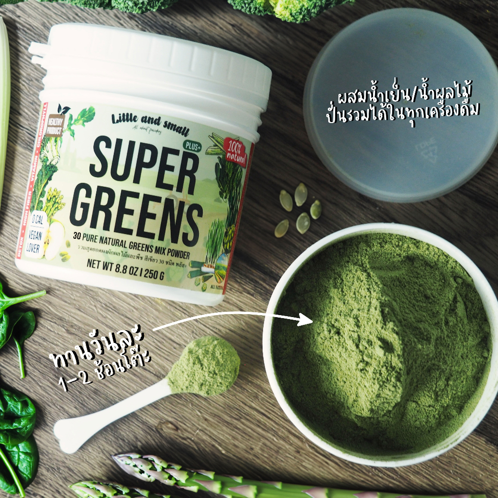 ผงผักสีเขียวล้วนรวม 30 ชนิด Freeze dried เข้มข้น พร้อมชง 250g