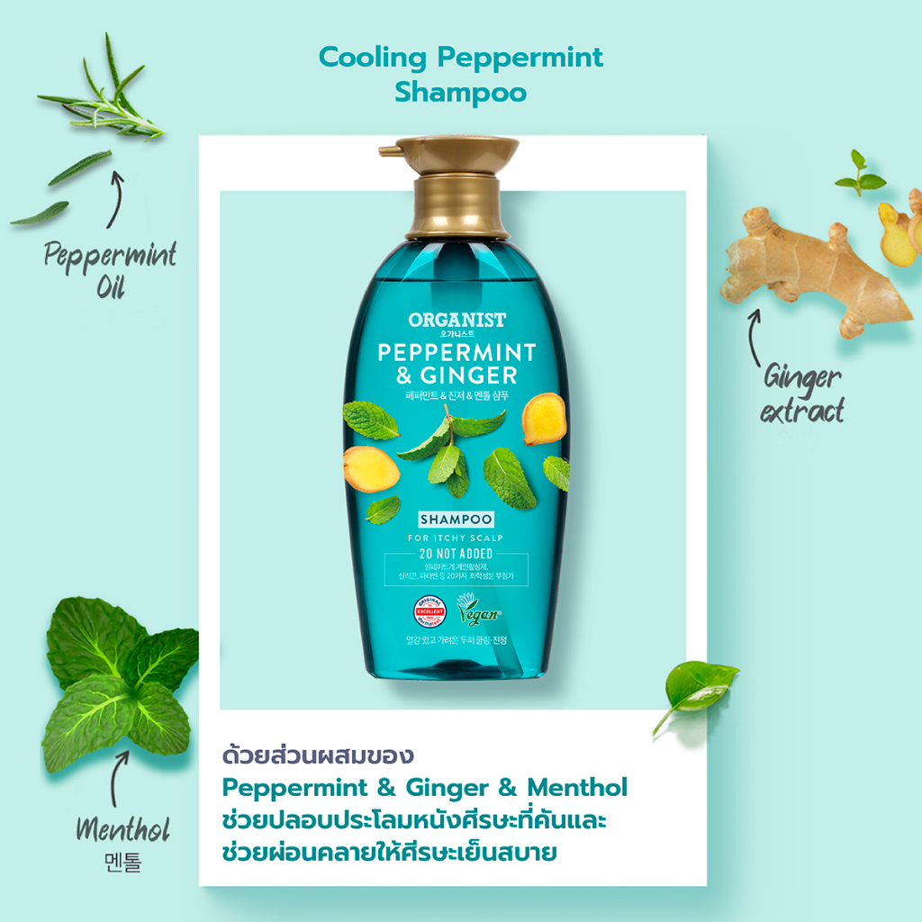 [ลดอาการคันหนังศรีษะ] Organist แชมพู ออกานิสท์ เปปเปอร์มิ้นต์ Peppermint And Ginger Dandruff Cooling Shampoo