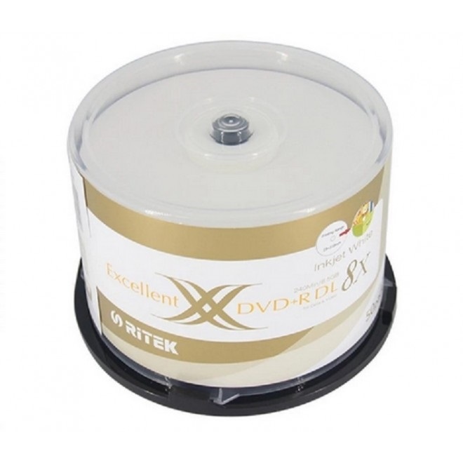 DVD+R DL 8.5GB Ritek 8X WHITE Inkjet Printable (pack 50.)