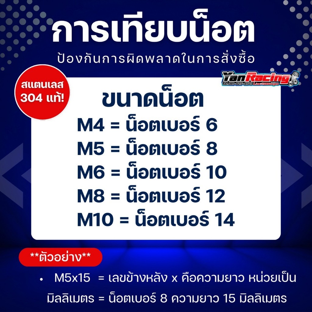 น็อตคอลโซน M8 M10 "เกลี้ยงปีก" เกลียว 1.25 สแตนเลสแท้304 ราคาต่อ1ตัว!!