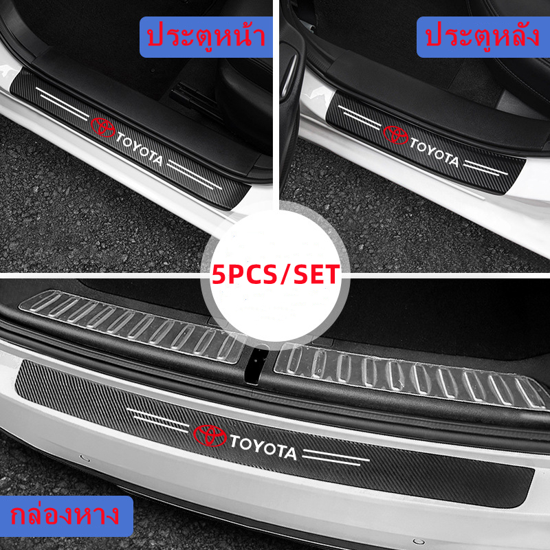 สติกเกอร์คาร์บอนไฟเบอร์ ลาย Hello Kitty ป้องกันรอยขีดข่วน สําหรับติดขอบประตูรถยนต์ 4 ชิ้น
