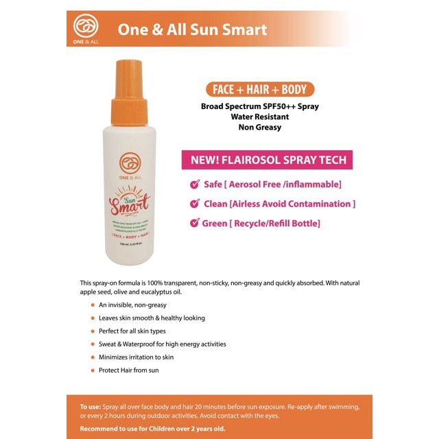One & All Sun Smart Sun Spray SPF50+PA++++ สเปรย์กันแดด หน้า+ตัว+ผม (100ml)