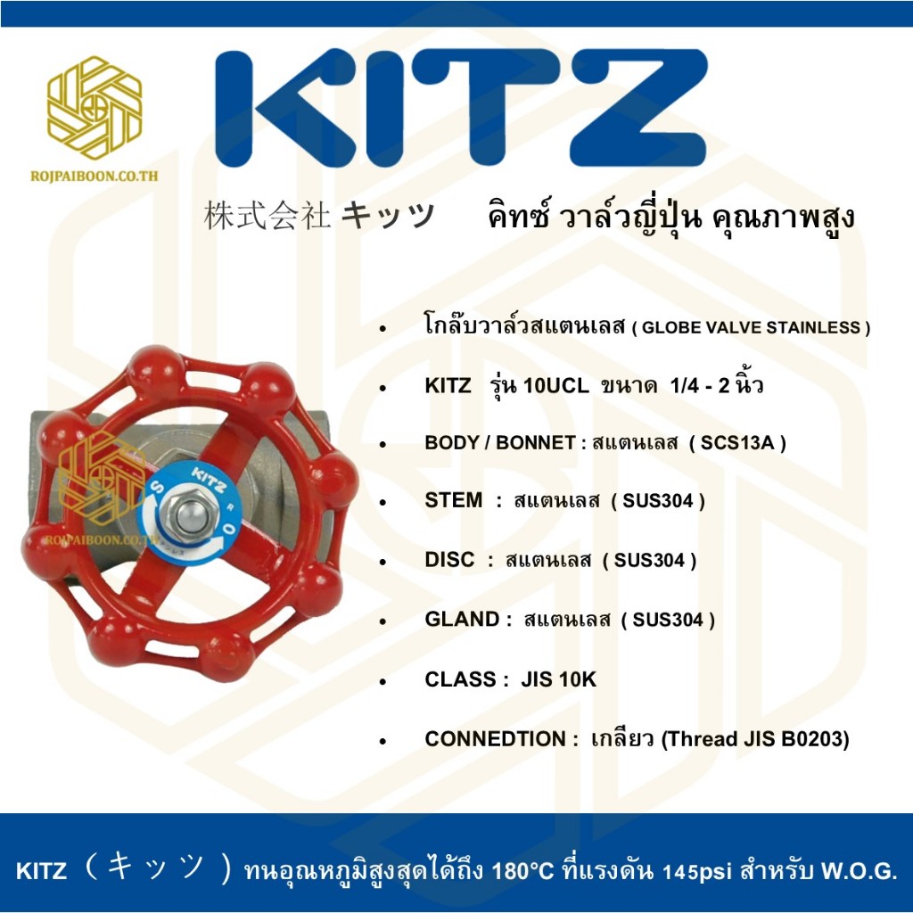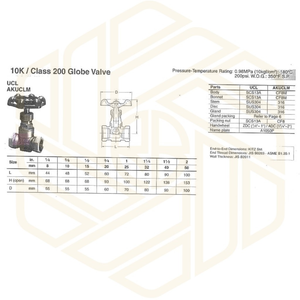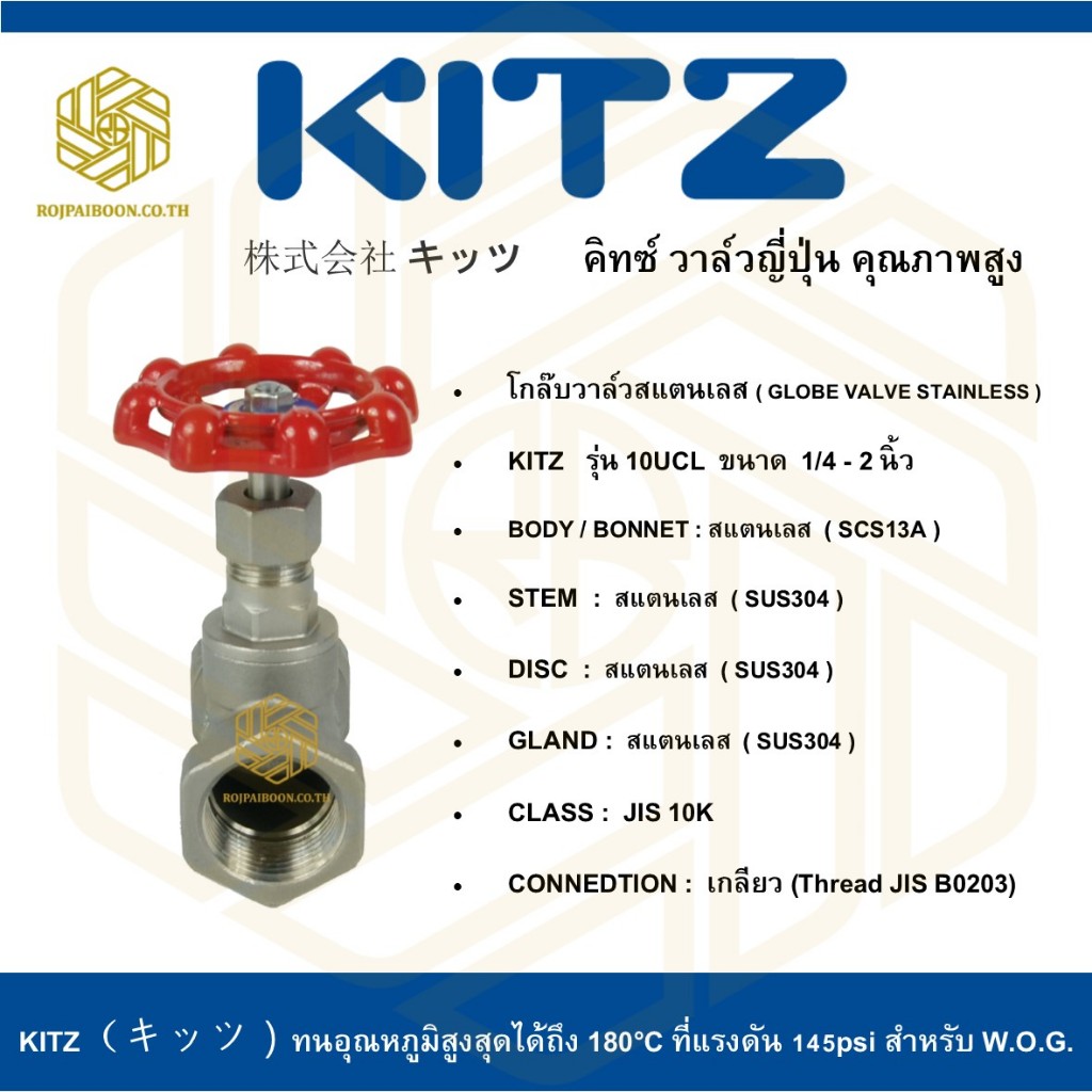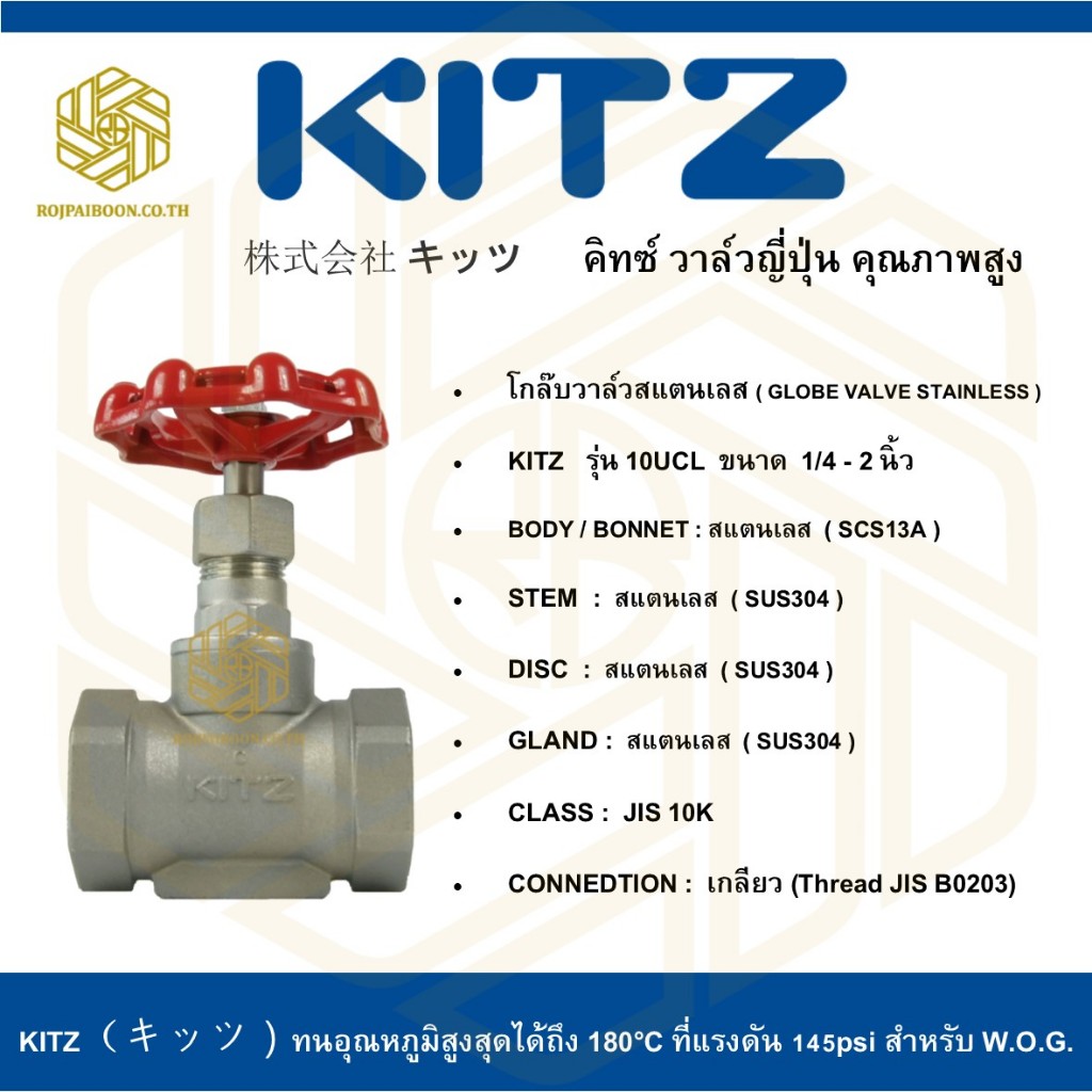 โกล๊บวาล์วสแตนเลสเกลียว KITZ รุ่น 10UCL 1 นิ้ว ( JIS 10K GLOBE VALVE STAINLESS STEEL )