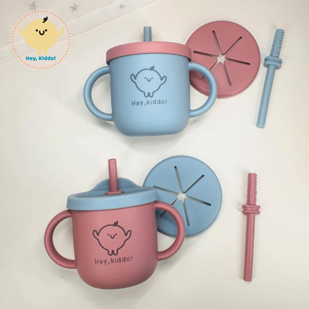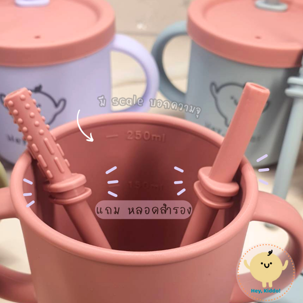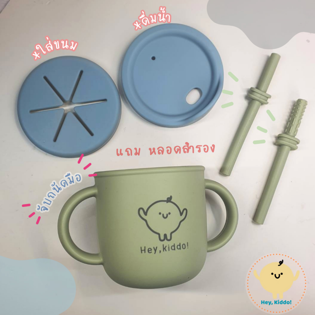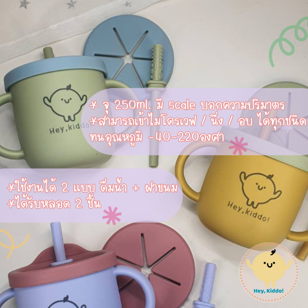 Heykiddo : แก้วหัดดื่มทูโทน 2in1 แก้วหัดดื่มซิลิโคน2สี ดื่มน้ำ ใส่ขนม ได้หลอด 2 แบบ คุ้มค่า จุ 250ML. สำหรับ6เดือนขึ้นไป