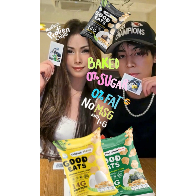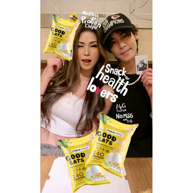 ขนมโปรตีนอบกรอบ 3 รส 12 ซองคละรสได้ ตรา Good Eats (Meatless Protein Chips) ขนมไม่อ้วน ขนมคลีน