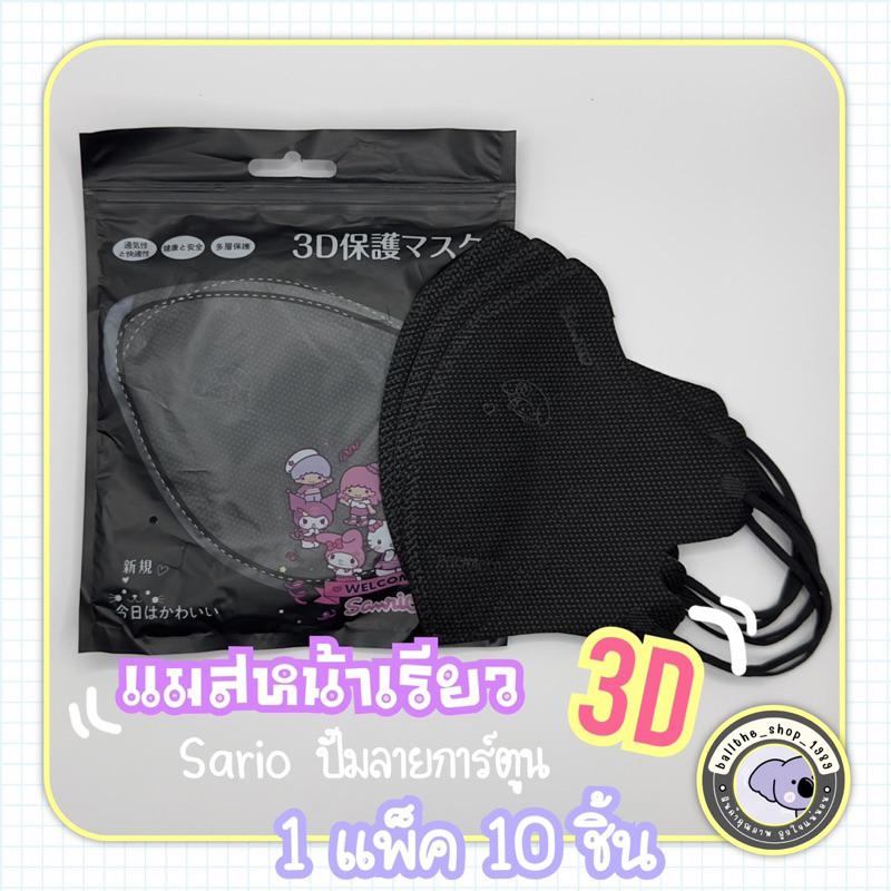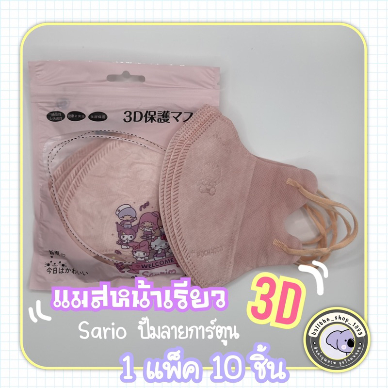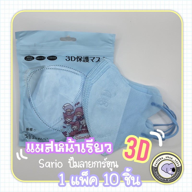 แมสหน้าเรียว แมส3D Sario ปั๊มลายการ์ตูน ตัวดังใน TikTok 1 แพ็ค มี 10 ชิ้น พร้อมส่ง