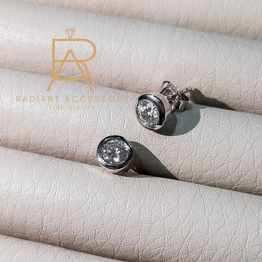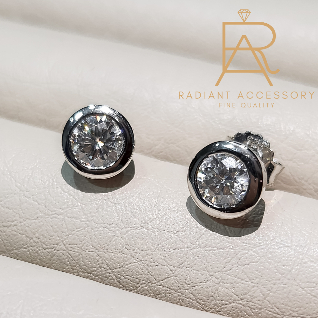 ต่างหูเงินแท้ ชุบทองคำขาว ฝังเพชร Moissanite พร้อมใบเซอร์