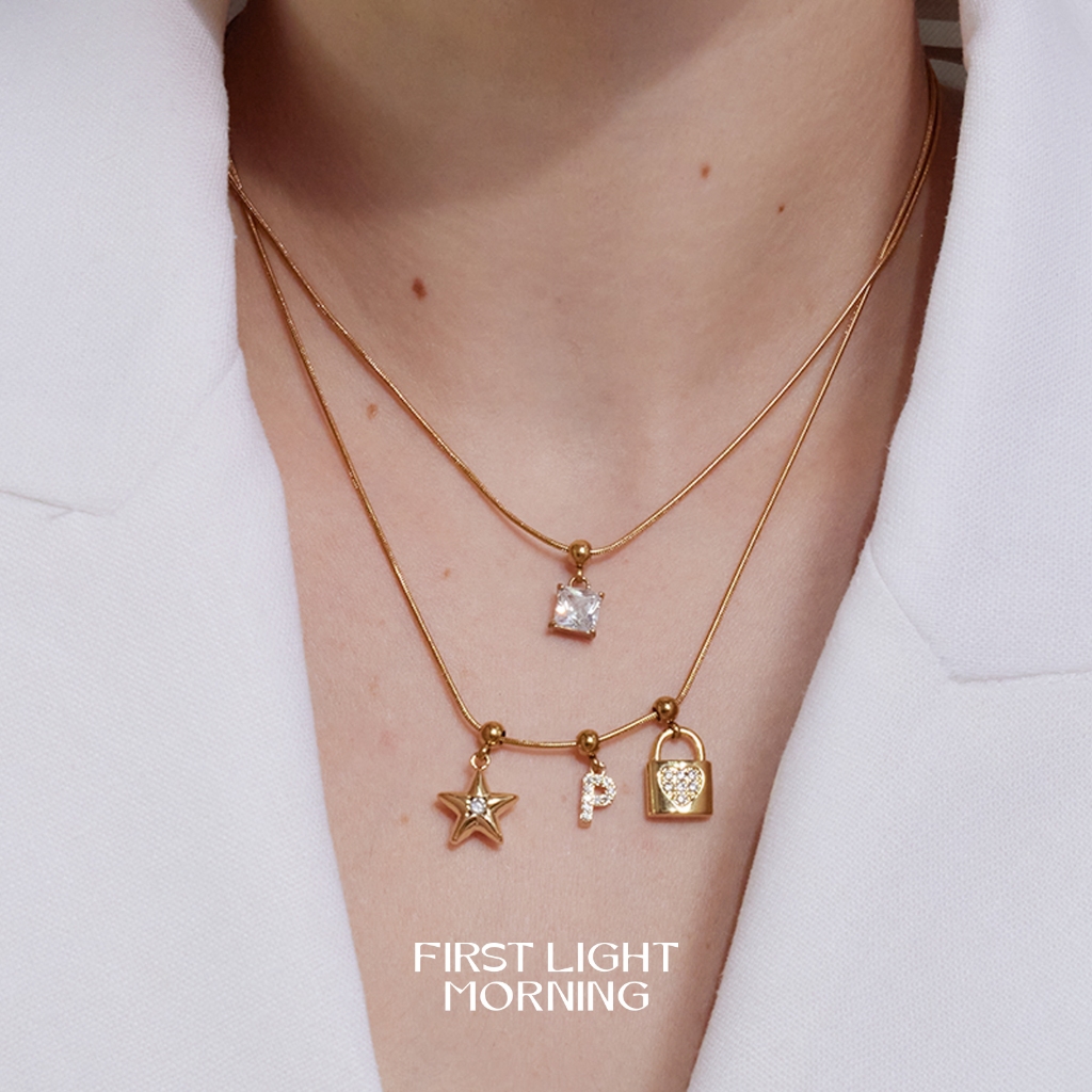 First Light Morning :Letter& Charm Necklace สร้อยคอ + Charm 1 ชิ้น สร้อยตัวอักษร สร้อย alphabet สร้อยปลายเข็ม