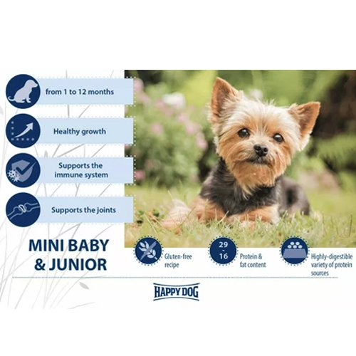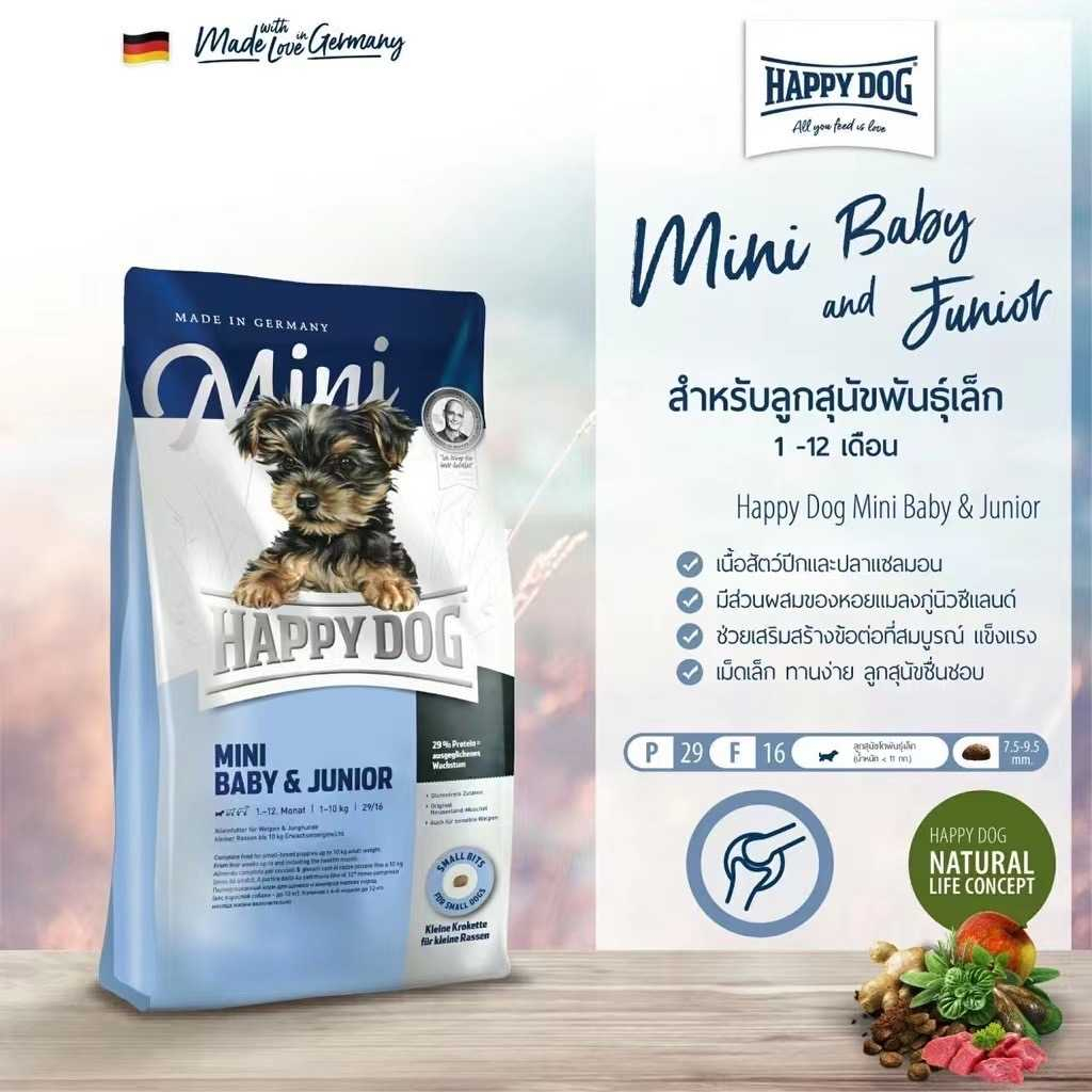 HAPPY DOG Fit & Vital Mini Puppy อาหารสำหรับลูกสุนัขพันธุ์เล็ก อายุ1-12เดือน ขนาด800กรัม