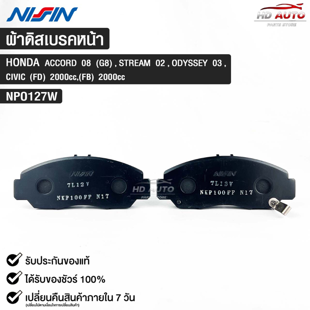 ผ้าดิสเบรคหน้า HONDA ACCORD (G8) ปี08 STREMปี02 ODYSSEYปี03 CIVIC (FD)2000cc,(FB)2000cc NISSIN นิชชิน NPO127W