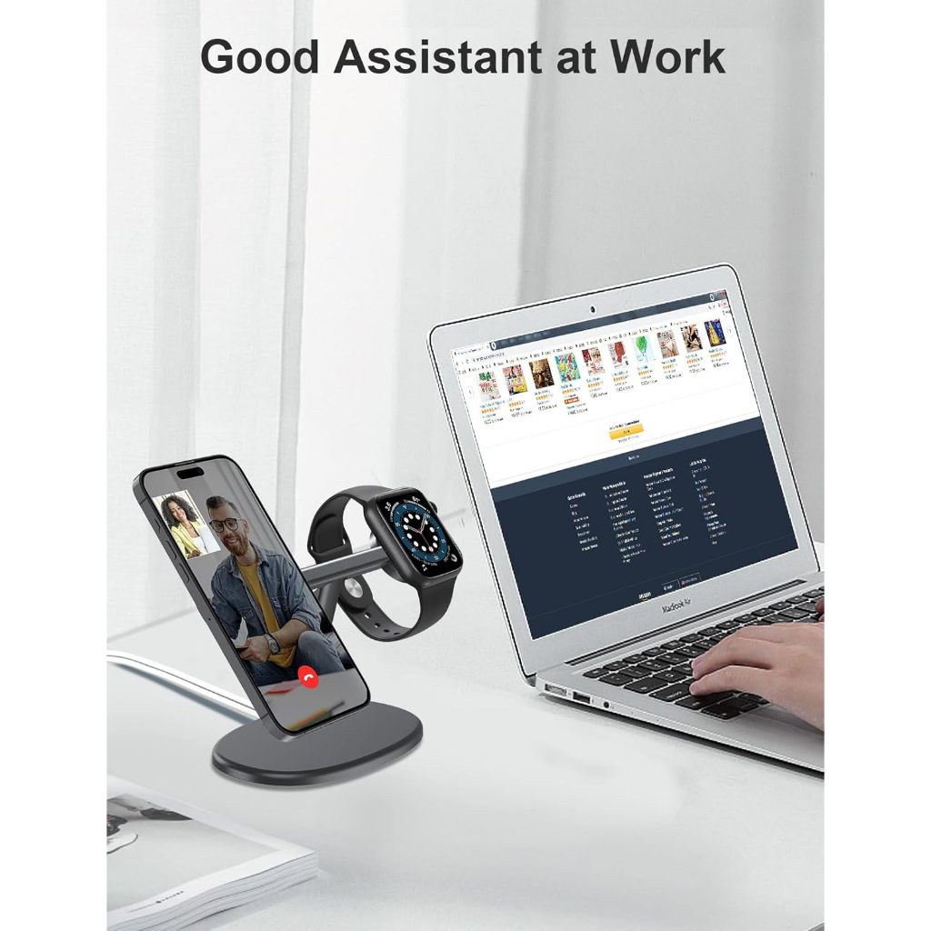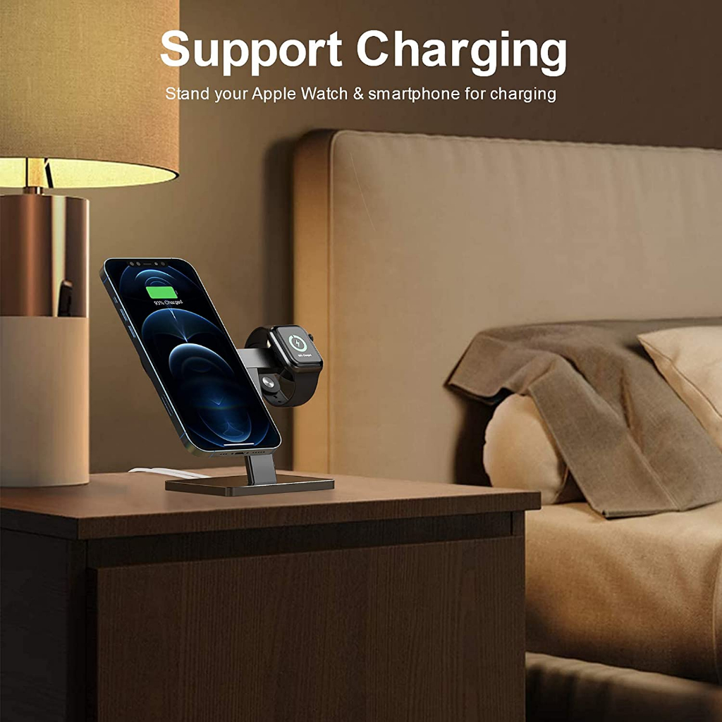 EWA 2in1 แท่นชาร์จไร้สาย(ที่วางไม่ไช่สายชาร์จ)แบบตั้งโต๊ะ Wireless Charging สำหรับ มือถือ และ นาฬิกา วัสดุอลูมิเนียม