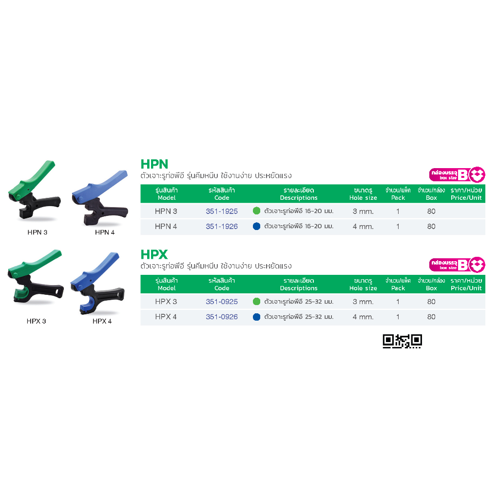 HPN ที่เจาะรูท่อพีอี ขนาด 16-20มม. รุ่น HPN3/HPN4 รุ่นคีมหนีบ ใช้งานง่าย ประหยัดแรง