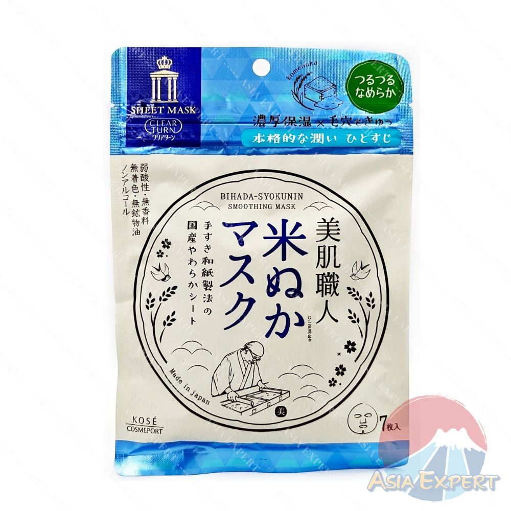 KOSE CLEAR TURN BIHADA SYOKUNIN SMOOTHING Sheet Mask 7แผ่น แผ่นมาส์กบำรุงผิวหน้า