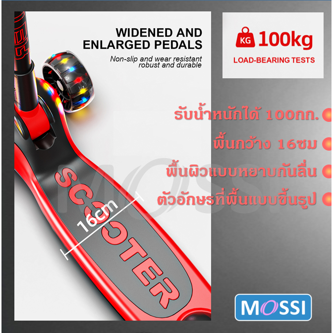 💦Mossi💦 สกูตเตอร์เด็กโต 3ล้อ ด้ามจับยาว รับน้ำหนักได้ 100กก. Kids scooter HT0017